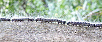 Prominent among the social caterpillars of African are the so-called African silkworms which include seven species in the genus Anaphe:infracta, carteri, moloneyi, panda, reticula, ambrizia, and vanata. Sibling groups of the caterpillars form nomadic colonies that consist of several hundred individuals. The caterpillars rest in tight clusters when not feeding and move over the branches of the host tree in processions.