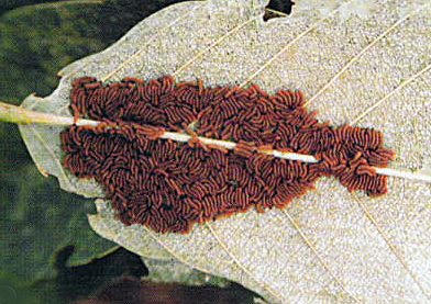 Egg mass and an aggregation of first instar Anaphe caterpillars
