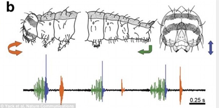 As shown in the image and video above, the caterpillar possesses unique structures termed 'anal oars' that are used to generate the scraping vibration.